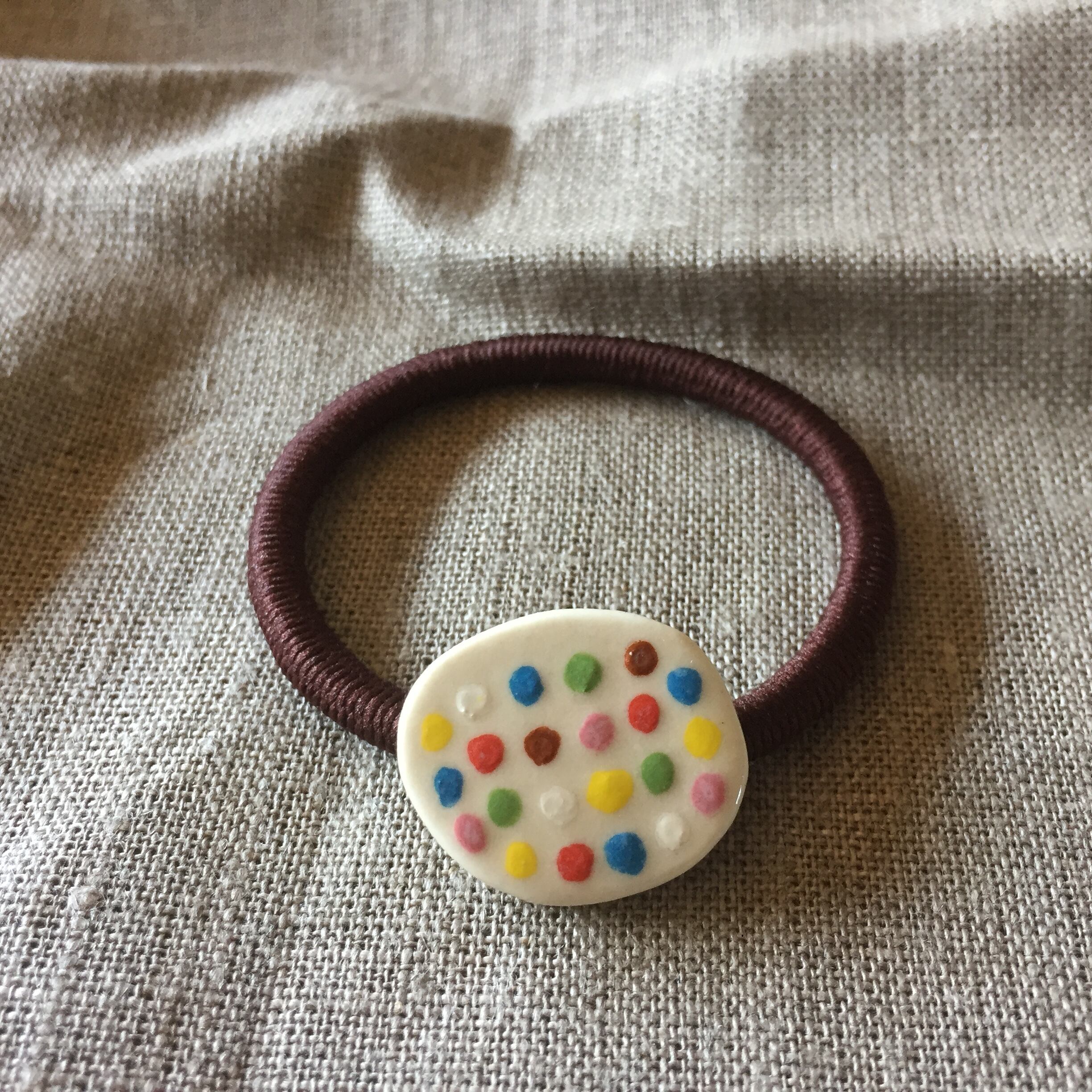 ころんと可愛い陶土のヘアゴムです。