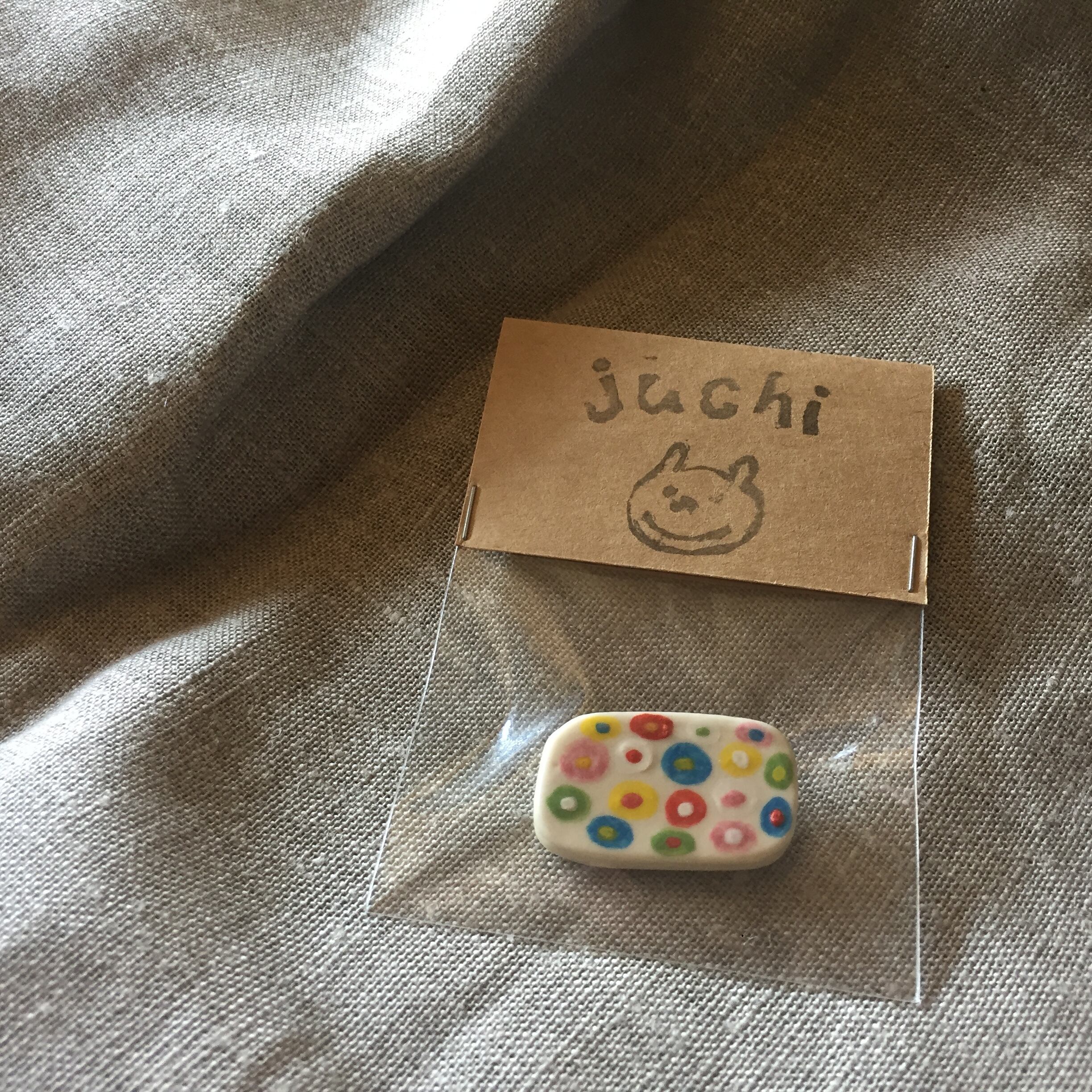 ころんと可愛い陶土のブローチです。